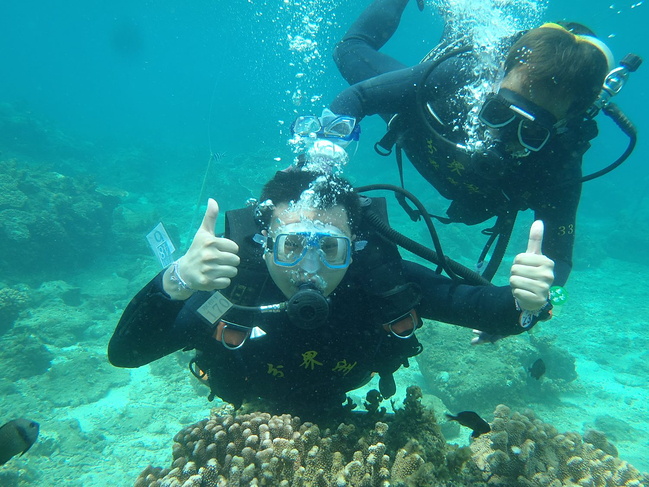 沉船潜水或外海深潜—沉船潜水时间为30分钟左右(不会游泳吗?嘻嘻没关系我们专业的教练会一带一的方式带你潜入梦幻般炫丽多彩珊瑚海底世界,欣赏在您身边嬉戏的各样热带鱼,可能尼莫就在旁边欣赏你哦!同时我们可以第一时间见证一段历史,在沉船之间穿梭探索,也是非常激动人心的一种体验。这就是沉船潜水的魅力。),开始咯!在潜水教练的带领下畅游海底世界,寻觅美丽的热带小鱼跟各色各样的珊瑚群来一次令您终身难忘的亲密接触。