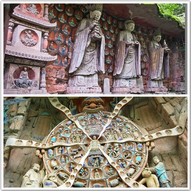 餐后游览世界文化遗产大足【宝顶山石刻】(游览时间不低于1.5小时),欣赏中国晚唐时期最大型的石窟造像艺术,宝顶山摩崖造像始凿于南宋年间,四周500米以内山岩上遍刻佛像,以六道轮回、广大宝阁楼、华严二圣像、千手观音像等最为著名,是我国石刻艺术中集佛教、儒教、道教于一体的艺术瑰宝;国际教科文组织定为中国石窟艺术最后的一座丰碑(景区有电瓶车,游客可根据自身情况自愿选择乘坐电瓶车游览)