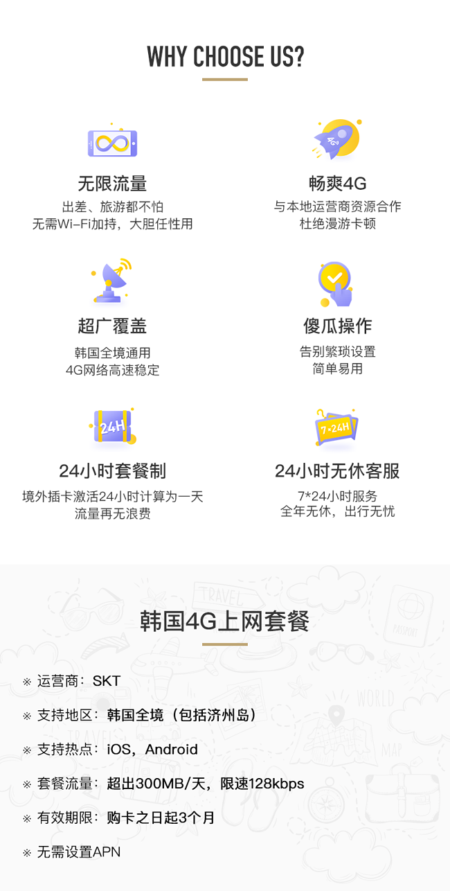 【亿点】韩国5天上网卡济州岛4G无限流量电话卡 (可热点)