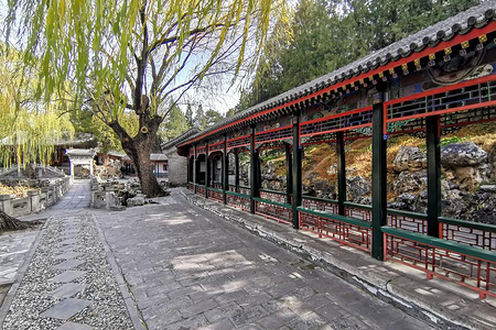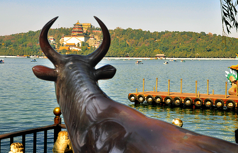 颐和园,中国清朝时期皇家园林,前身为清漪园,坐落在北京西郊,距城区15公里,占地约290公顷(2.9平方千米),与圆明园毗邻。它是以昆明湖、万寿山为基址,以杭州西湖为蓝本,汲取江南园林的设计手法而建成的一座大型山水园林,也是保存最完整的一座皇家行宫御苑,被誉为“皇家园林博物馆”。