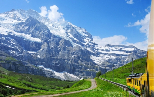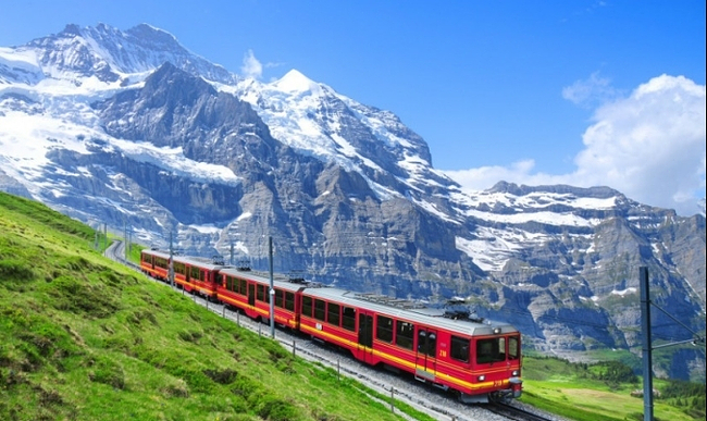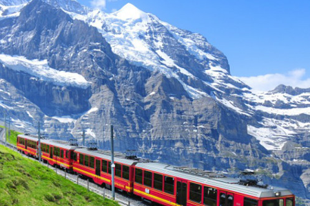 从山脚下的因特拉肯出发,登山列车只需2小时17分, 就可把游人送上原本只有专业攀岩都才能抵达的高达3454米的冰雪世界.在劳特布龙嫩(Lauterbrunnen)/格林德尔瓦尔德(Grindelwald)换乘一次后, 到小夏戴克(Kleine Scheidegg) 站统一换乘红色观光登山铁道登顶. 途中在艾格尔旺德( Eigerwand)和艾斯美(Eismeer)两站各有5分钟停车时间, 以供游客眺望. 随后火车将带领游客到达欧洲最高的火车站-少女峰火车站, 即可参观欧洲最高的观景台-斯芬克司观景台和充满神色彩的超级冰宫.